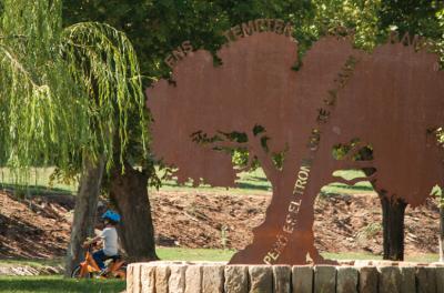 L’itinerari del Parc, dissenyat en forma de vuit com el símbol d'infinit1, acull, d’una banda, una mostra representativa de l’obra poètica de Viladot, la qual inclou deu composicions diferents, concretament sis textos originals de l’autor, reproduïts sobre diferents faristols, i quatre recreacions en forma d’escultures urbanes dissenyades per Jaume Figuera, inspirades en dos poemes concrets i dos més de visuals. Es tracta de peces tridimensionals de gran volum, algunes de les quals conformen un mateix poema. Aquest és el cas de les cinc peces escultòriques que interpreten formalment i conceptualment el poema concret titulat Formes de vida, el poema central del Parc. Totes elles concebudes per mantenir un diàleg amb el visitant, entre l’art i el territori, la cultura i la natura, entre el camp i la ciutat, entre el contingut i el continent, que en aquest cas esdevé també contingut.